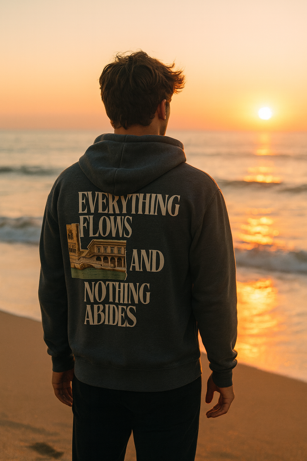 “Everything Flows and Nothing Abides” Philosophy Hoodie — Heraclitus Quote | Minimal Mindfulness Streetwear | Unisex Inspiration Hoodie